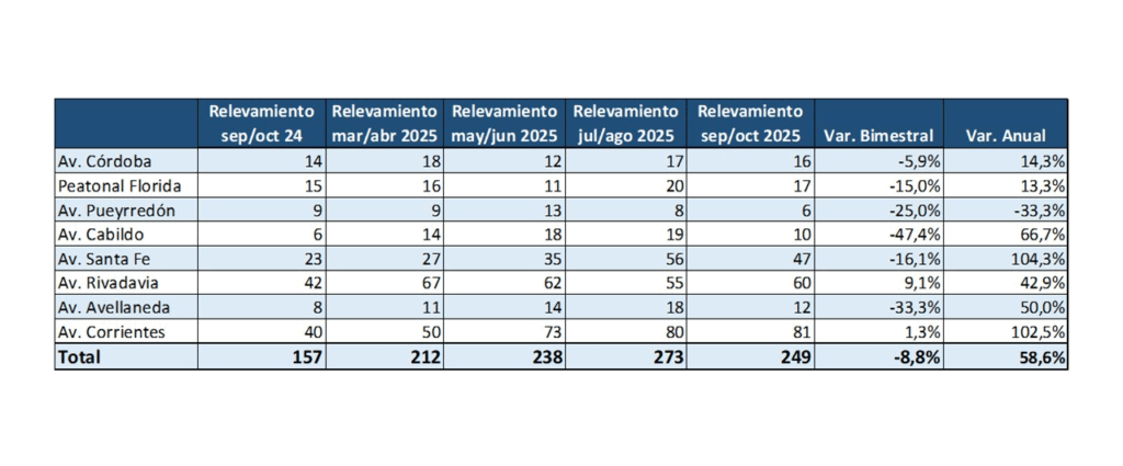 Por su parte, el informe mostró que el número de locales vacíos en las principales áreas comerciales de la Ciudad registró un descenso del 8,8% frente a la medición anterior, es decir, el bimestre julio-agosto de 2025.