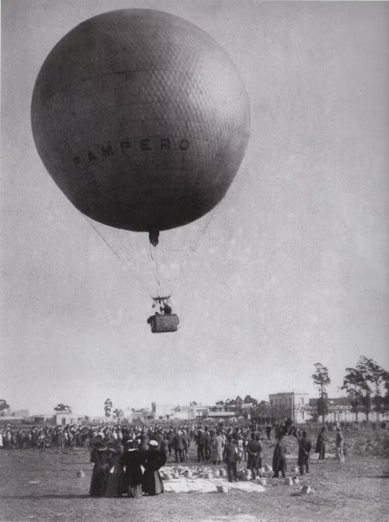 Debutó el 25 de diciembre de 1907 en el campo de la Sociedad Sportiva Argentina (hoy Campo de Polo). Para inflar el globo, fue tendida hasta ahí una cañería provisoria de lona cauchutada desde la fábrica de gas (hoy Solar de la Abadía).